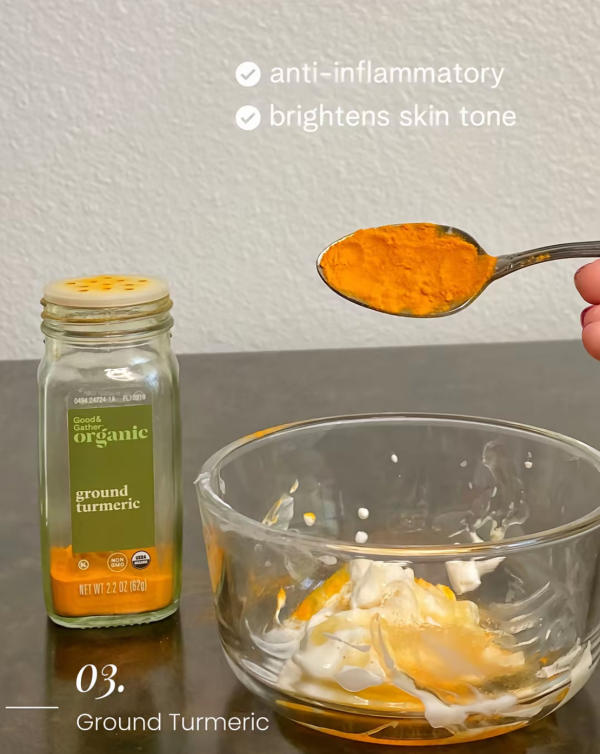 It's a brightening powerhouse due to its antioxidant and anti-inflammatory properties. It can help reduce redness and even out skin tone, leaving the complexion with a natural glow. A small amount provides a golden hue to the mask while enhancing its skin-lightening effects.