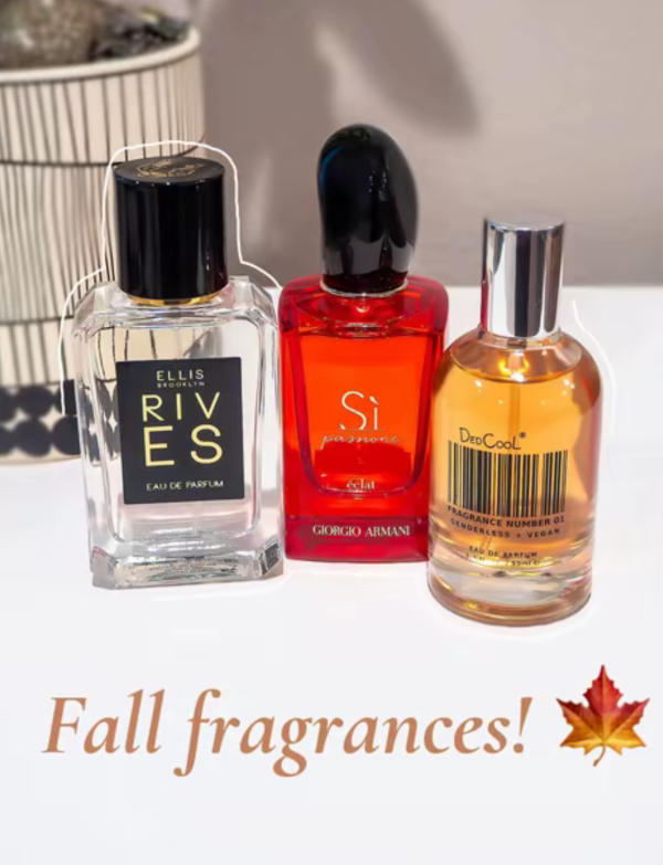 Each of these fall fragrances brings something unique: DedCool Taunt 01 is cozy and versatile, Ellis Brooklyn Rives is light and elegant, and Armani Si Passione is bold and luxurious. Whether for everyday wear or special nights out, these scents add warmth and charm to the crisp fall season!